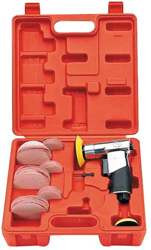 Compact and light weight for easy access in tight areas. Instead of using a 6in. diameter sander for a 1in. scratch, us this 2in. or 3in. tool. Includes backing pads, a variety of sandpaper grits, spindle key and carry case. Air Consumption (CFM): 21, Speed (RPM): 15,000, Pad Diameter (in.): 2 and 3, Random Orbital: Yes, Variable Speed: